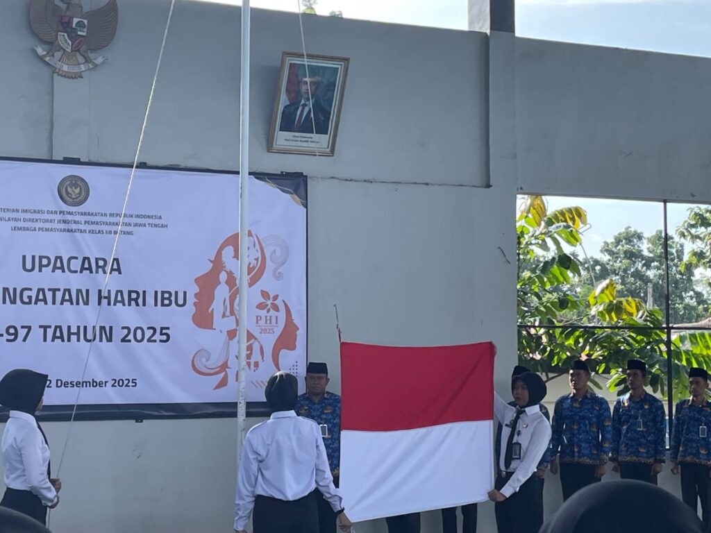 Batang – Lembaga Pemasyarakatan (Lapas) Kelas IIB Batang menggelar upacara peringatan Hari Ibu Tahun 2025, Senin (22/12). Upacara yang mengusung tema “Perempuan Berdaya dan Berkarya, Menuju Indonesia Emas 2045” ini dilaksanakan di Aula Lapas Batang dan diikuti oleh jajaran petugas Lapas Batang, Calon Pegawai Negeri Sipil (CPNS), peserta magang, serta warga binaan perempuan Lapas Batang dengan penuh khidmat dan kedisiplinan.